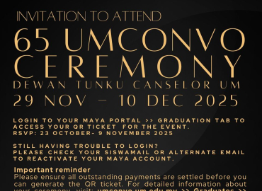 PEMAKLUMAN TARIKH ISTIADAT KONVOKESYEN UNIVERSITI MALAYA KE-65